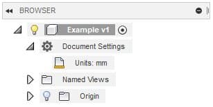 The browser contains all the components, features, bodies, sketches, and construction geometry of a design. The browser takes the form a tree-like structure which should be familiar from common CAD packages.