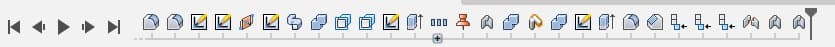 The timeline shows a history of all the operations performed to create the part. This includes all features, patterns, material changes, and sketches to name a few. This is a unique feature that allows you to see the complete history of their part without having to navigate through the browser tree. Any feature can be modified with a right-click within the timeline. The timeline can also be used to find that specific feature in the browser tree.
