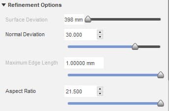 This option allows you to select one of three pre-defined refinement settings: low, medium, and high. This determines the total number of triangles used in the model. There is also a custom option which allows the user to further refine the mesh based on specific parameters: